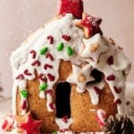 If you need to transport your gingerbread house to a party, holiday gathering, or gift exchange, I place it on a sturdy cardboard base, then set it inside a large box or an insulated casserole carrier with crumpled parchment paper around the sides to prevent shifting.