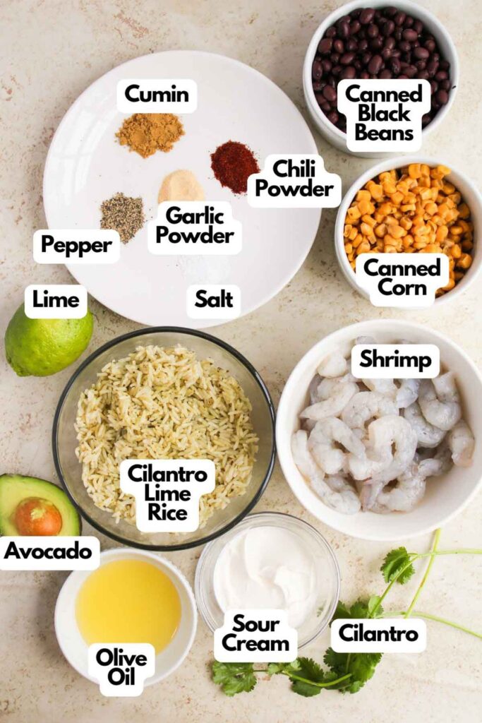 Leftovers? No problem! Store the components separately in airtight containers in the fridge. The shrimp will stay fresh for up to 3 days, while the rice and toppings like beans and corn will last about 4-5 days. Keep the avocado uncut or add it fresh to avoid browning.