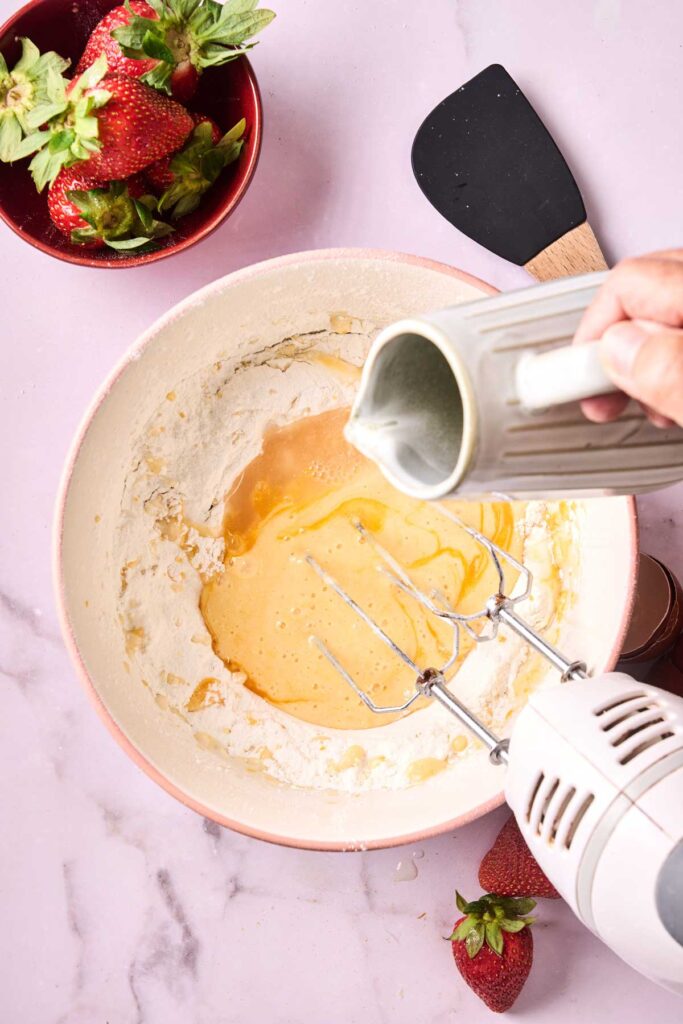 Use a hand mixer or whisk—whatever you have on hand. I use this hand mixer because it’s super easy to use, comes with a whisk attachment, and saves me from dragging out the big stand mixer. If you’d rather skip the electric mixer altogether, a balloon whisk works just fine—it’s sturdy, comfortable to hold, and gives you more control when mixing by hand.